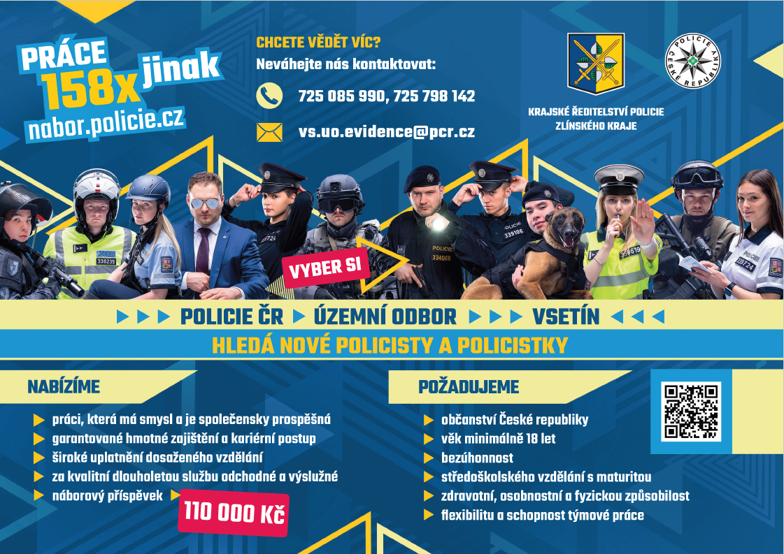 Policie České republiky, územní odbor Vsetín rozšiřuje své řady a hledá nové kolegy.